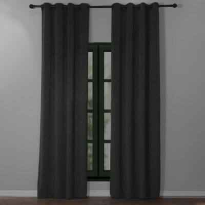پرده آماده از جنس مخمل مشکی مدل GARNET با بافتی لطیف و براق، دوخت پانچ و ابعاد ۱۴۰×۲۸۰. این پرده برای فضاهای مدرن و رسمی، اتاق پذیرایی و اتاق خواب گزینهای شیک و آماده نصب است.