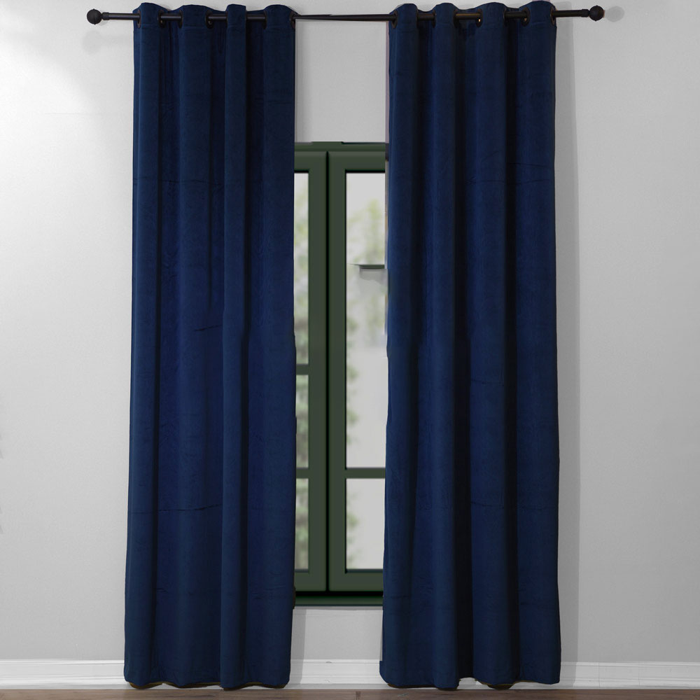 پرده مخمل سرمه ای مدل گارنت، آماده نصب با دوخت پانچ، پارچه لطیف و پوشش عالی برای پذیرایی و اتاق خواب.